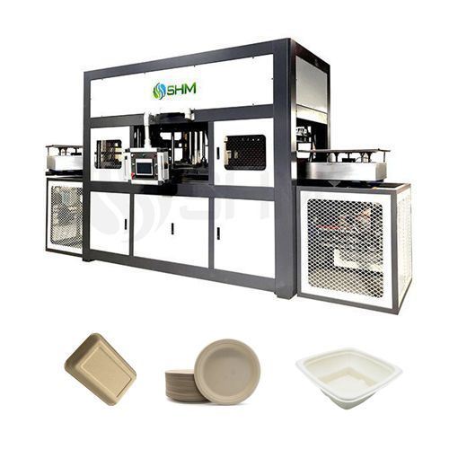 The machine works with fiber pulp sheets, wood pulp, and bagasse raw materials, all of which are biodegradable.